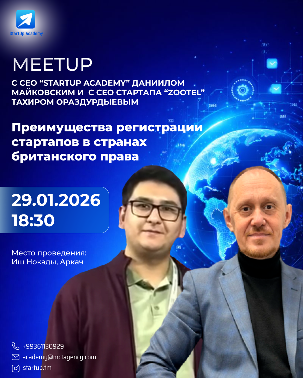 Митап пройдёт 10 декабря 2025 года в 18:30 в Иш Нокады, Аркач. Это отличная возможность получить практические инструменты, задать свои вопросы напрямую и познакомиться с другими участниками локальной стартап-экосистемы. В связи с техническими неполадками, регистрацию можно осуществить с помощью SMS по номеру телефона +993 61 130929.