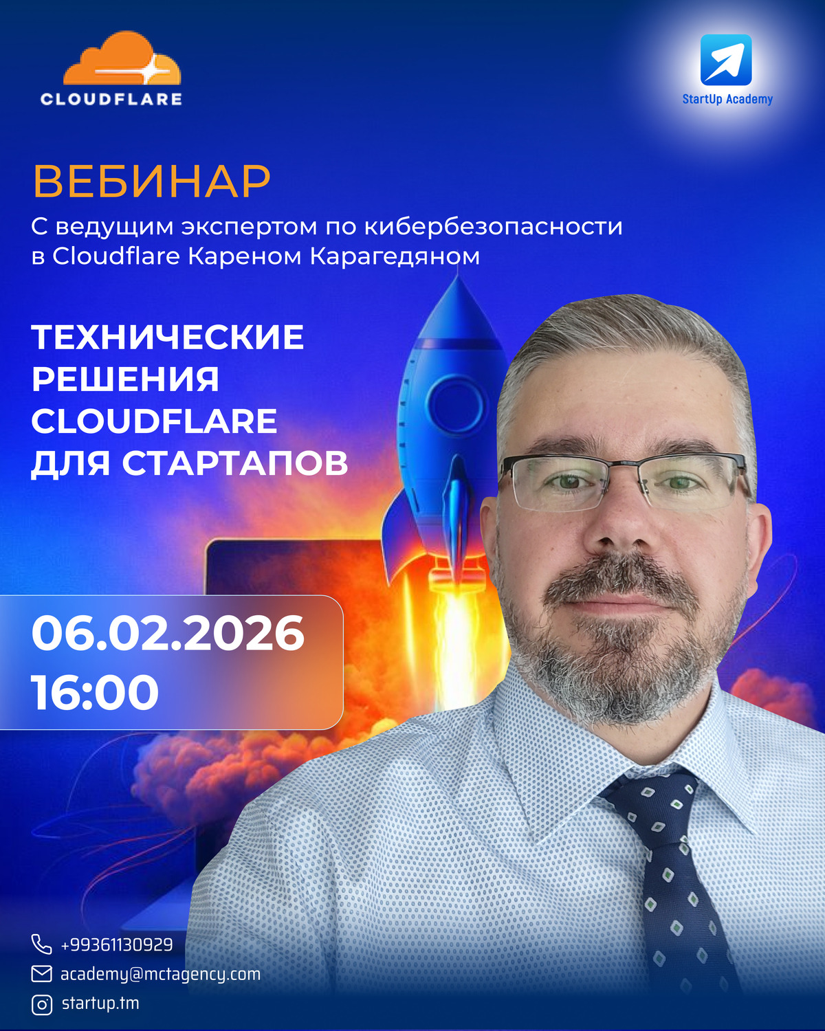 Спикером вебинара выступит ведущий эксперт по кибербезопасности в Cloudflare Карен Карагедян, который поделится практическим опытом применения решений Cloudflare для стартапов и технологических проектов.